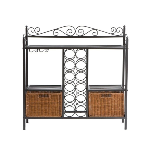 This Kitchen Dining Baker's Rack with Wine Storage and Rattan Baskets will improve storage, display and organization. Also, it features two lower hand-stained rattan baskets.