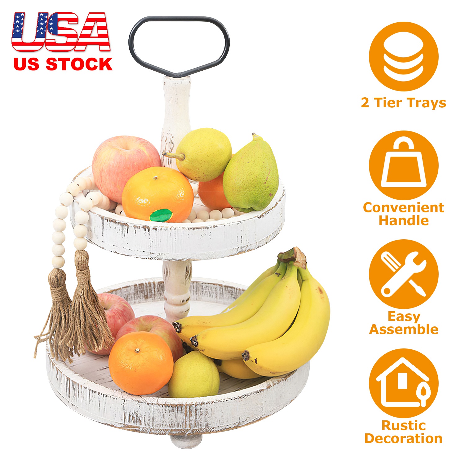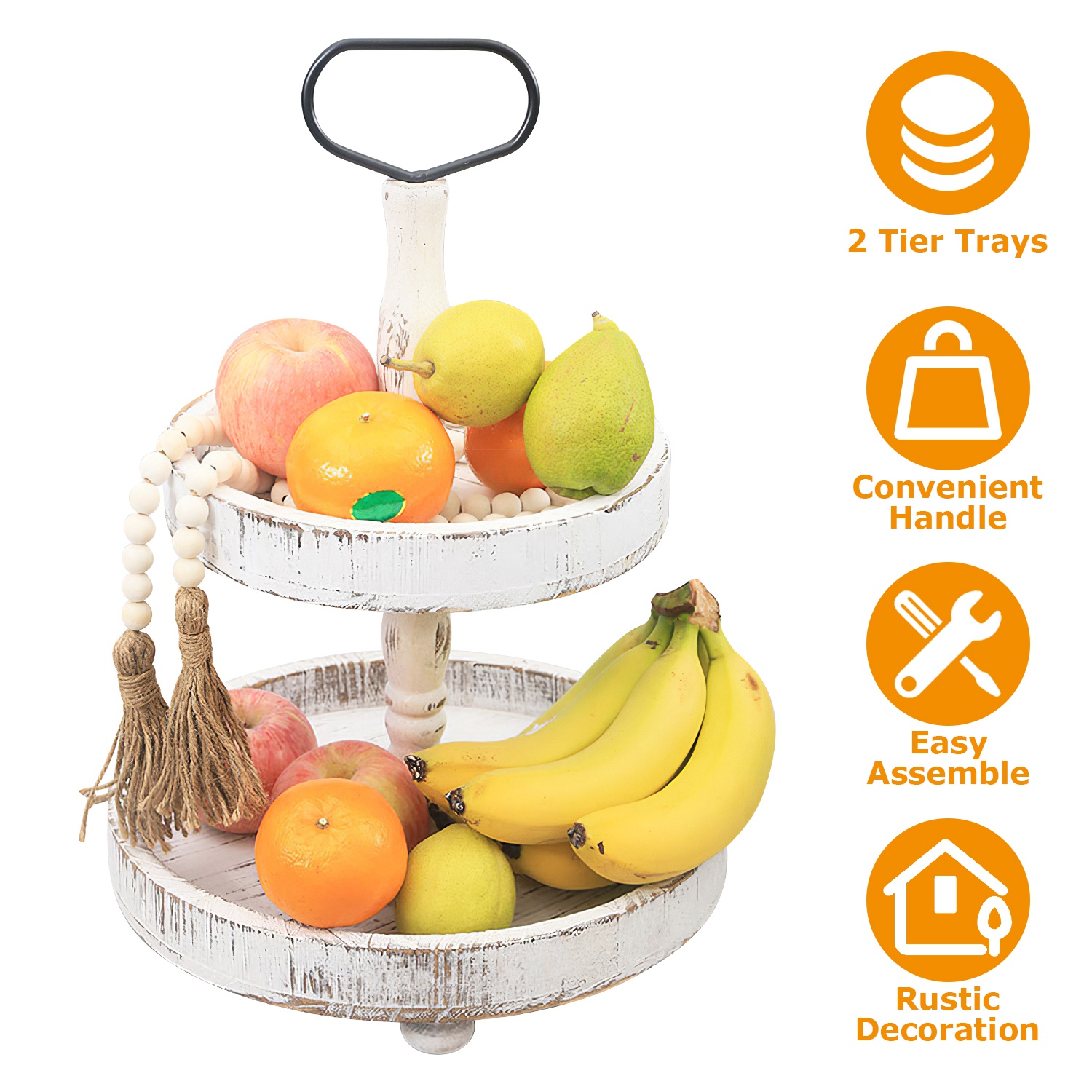 2 Tier Serving Tray Round Farmhouse Kitchen Table Tray Stand Food Fruits Cupcake Display Coffee Countertop Tray