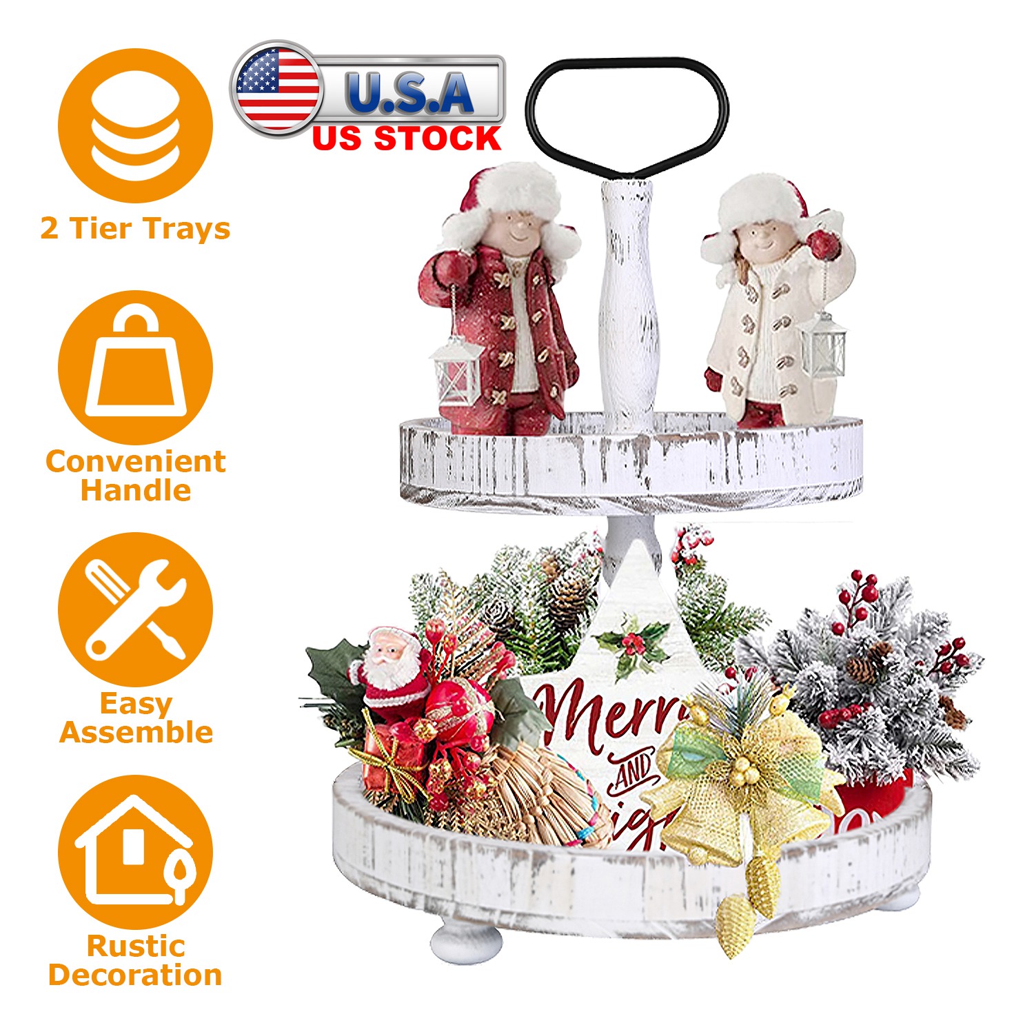 This 2 tiered tray, both the top and bottom round trays have ample space for you to store anything you need. You can add cupcakes, bread, fruit and any decorations to your party or just for daily use. Premium Paulownia materials with a subtle varnish applied you won’t catch any splinters, wood rot or paint chips on this tray. Simply group your favorite items with a theme to style your tray, you will find lots of ways to play with it. Easy to assemble and disassemble the food tray.