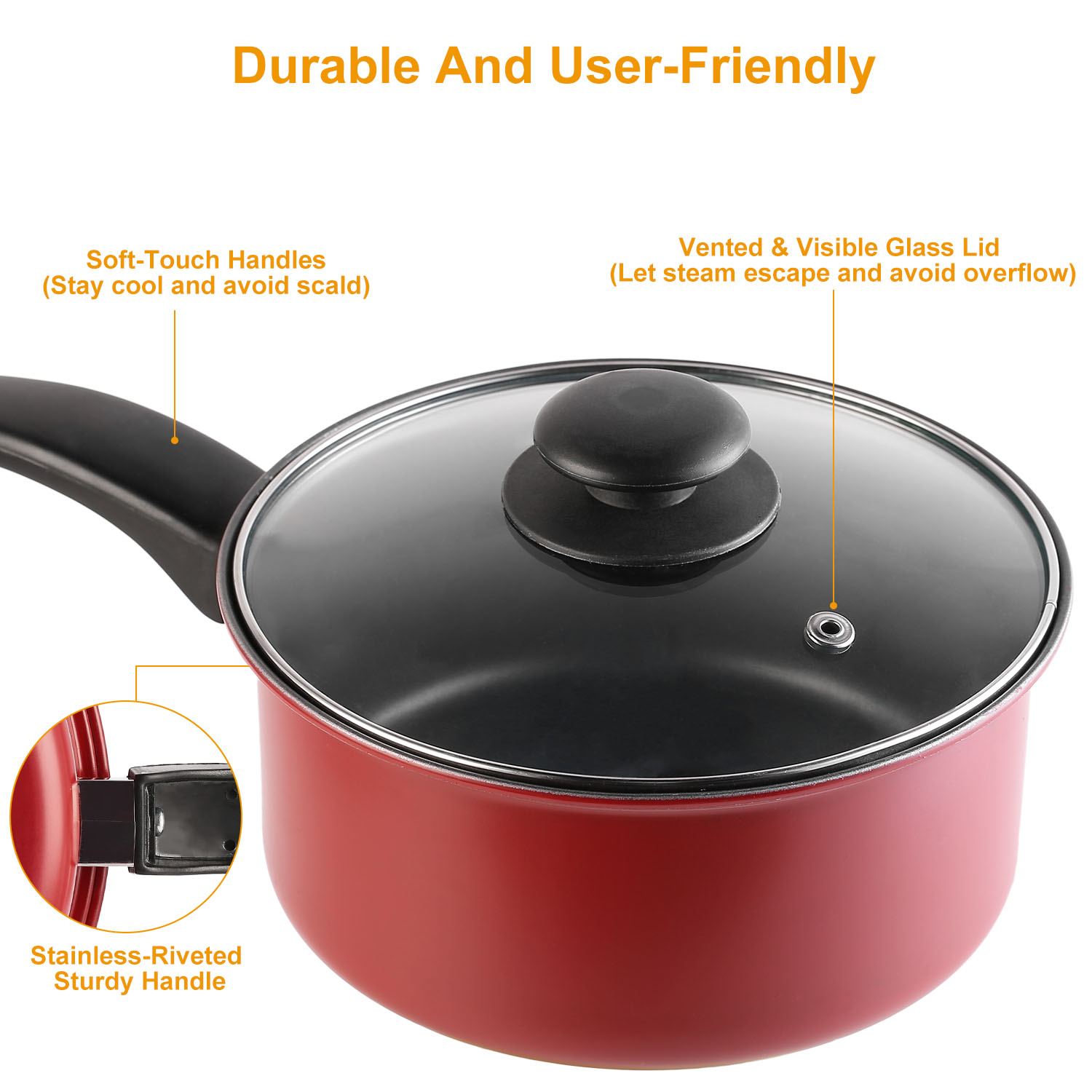 7Pcs Nonstick Cookware Set Nonstick Pots Pans Kitchenware Set with 2 Sauce Pans 1 Fry Pan 1 Casserole 3 Lids Indoor Outdoor Use