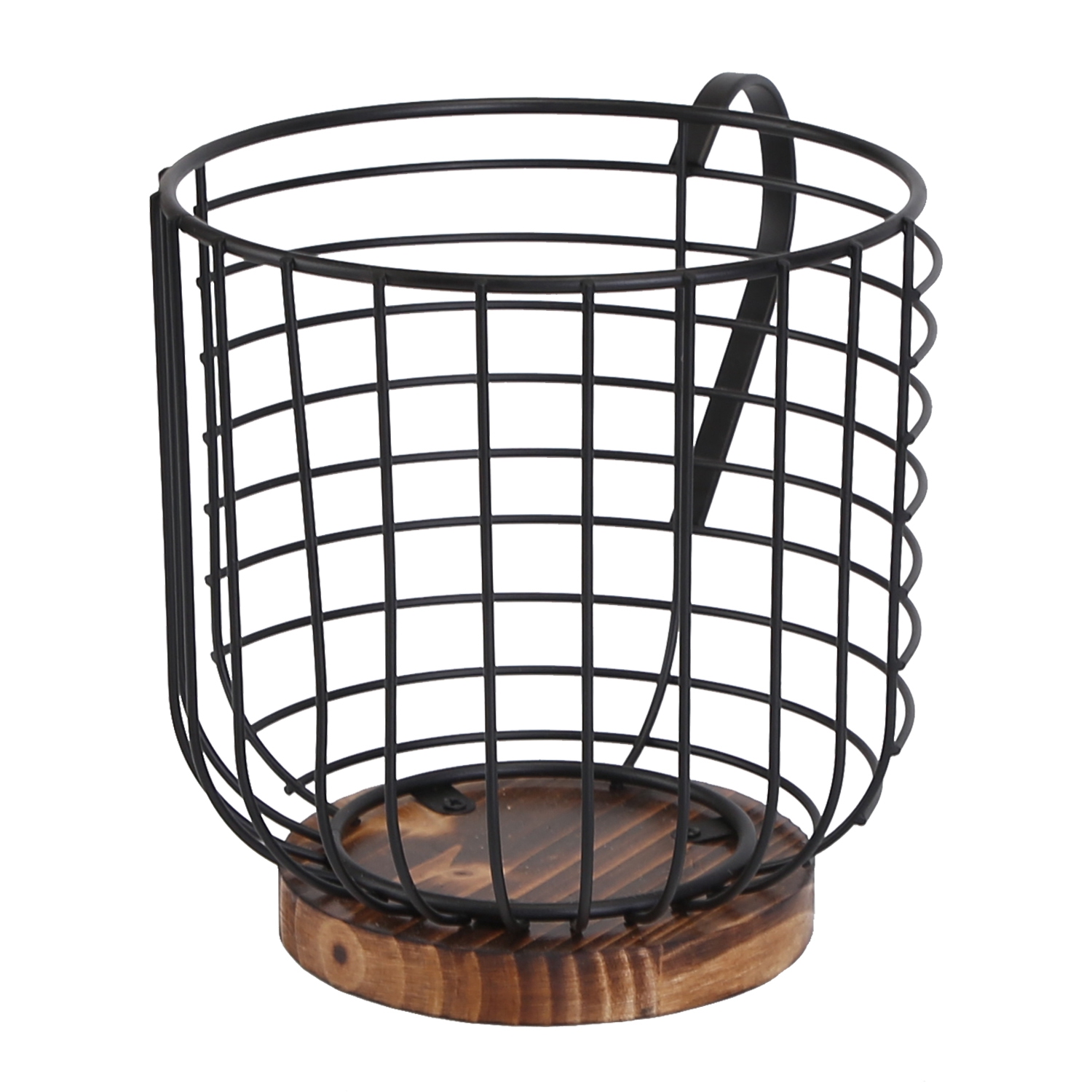 Measuring 5.91x8.26x6.1in, this coffee pod holder can accommodate a large amount of coffee capsules, fruit, bread, snack and so on. Made of natural solid wooden base and stoving varnished iron wire, this Kcup organizer ensures strength, not easy to get rust, corrosion, and long-lasting color retention while adding an elegant touch to your coffee-themed settings and decorations. This practical and affordable assistant is perfect for maintaining a tidy coffee corner.