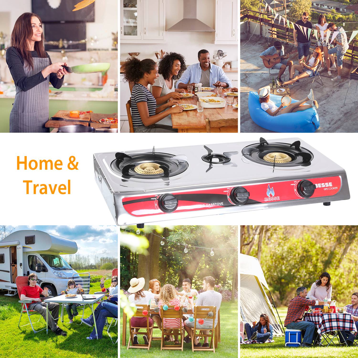 Enjoying life starts with enjoying cooking and eating. This 3-burner stove is a must-have in your kitchen! Designed with 3pcs burners, the stove can hold three pans/pots at once, perfect for preparing steaks, burgers, bacon, sausage, etc.. Great to be used in home, dorms, offices, apartment and more occasions.