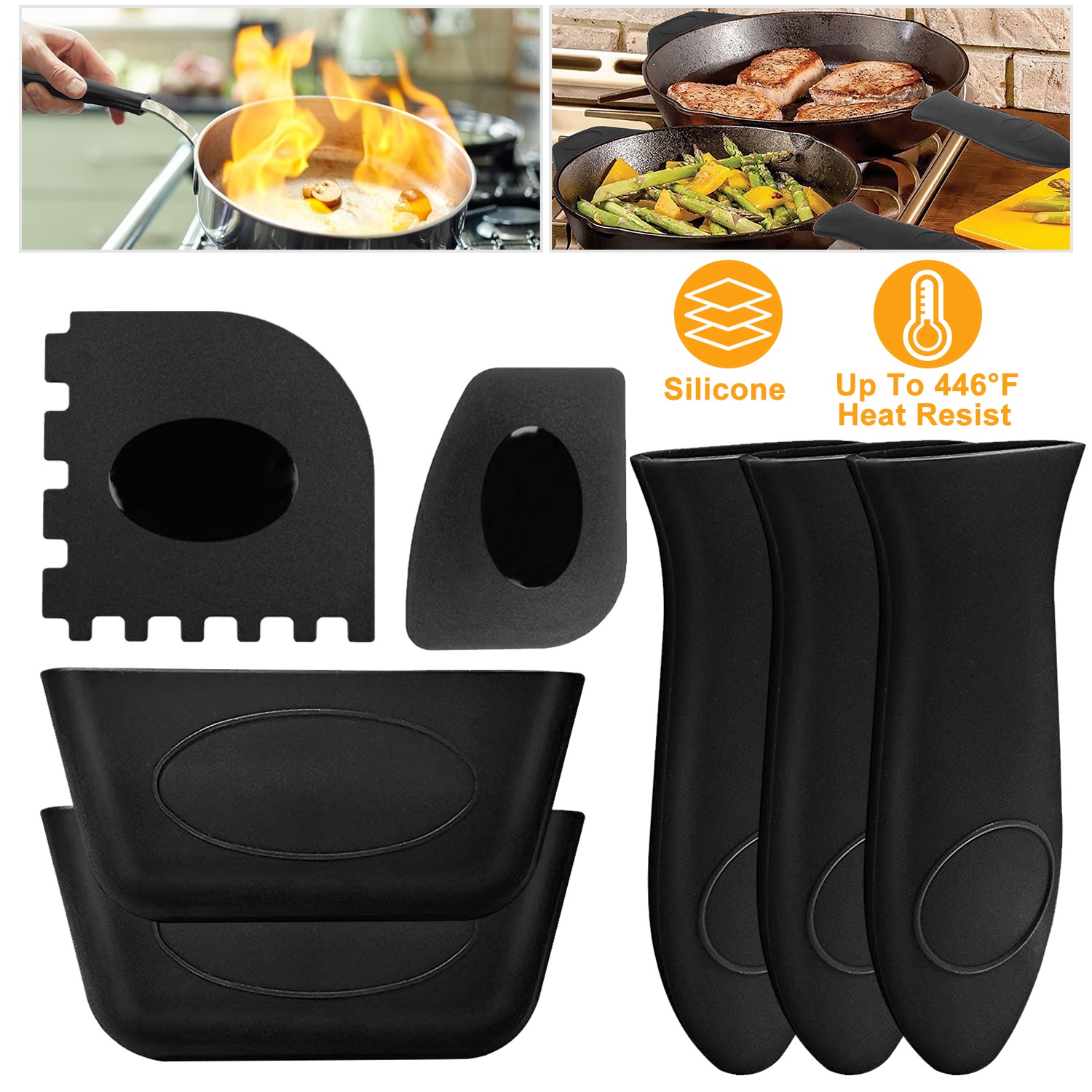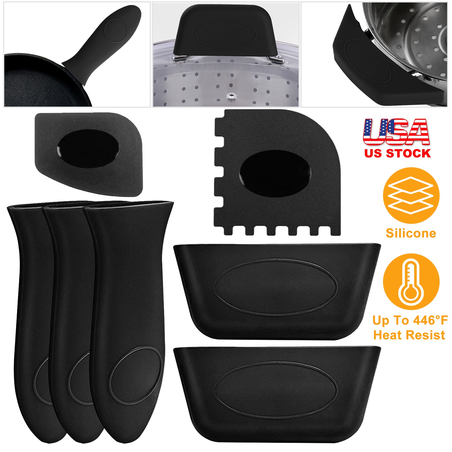 7Pcs Silicone Hot Handle Holder Non Slip Pot Handle Cover Sleeve Heat Resistant Potholder For Cast Iron Skillets Frying Pans Aluminum Cookware Handles