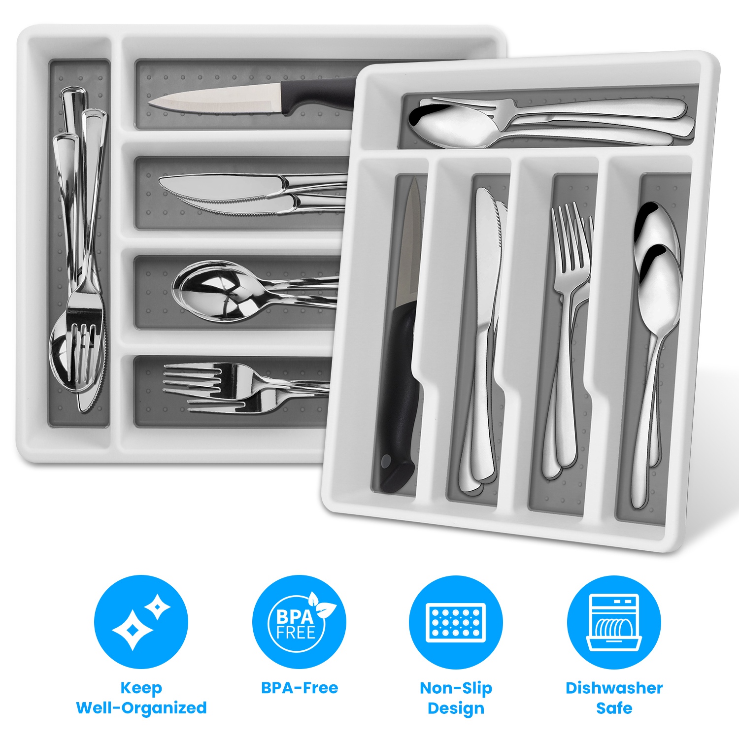 Home > 2Pcs Silverware Organizer Utensil Flatware Organizer Kitchen Drawer Silverware Storage Tray with Non-Slip 5 Compartments For Cutlery Spoon Fork